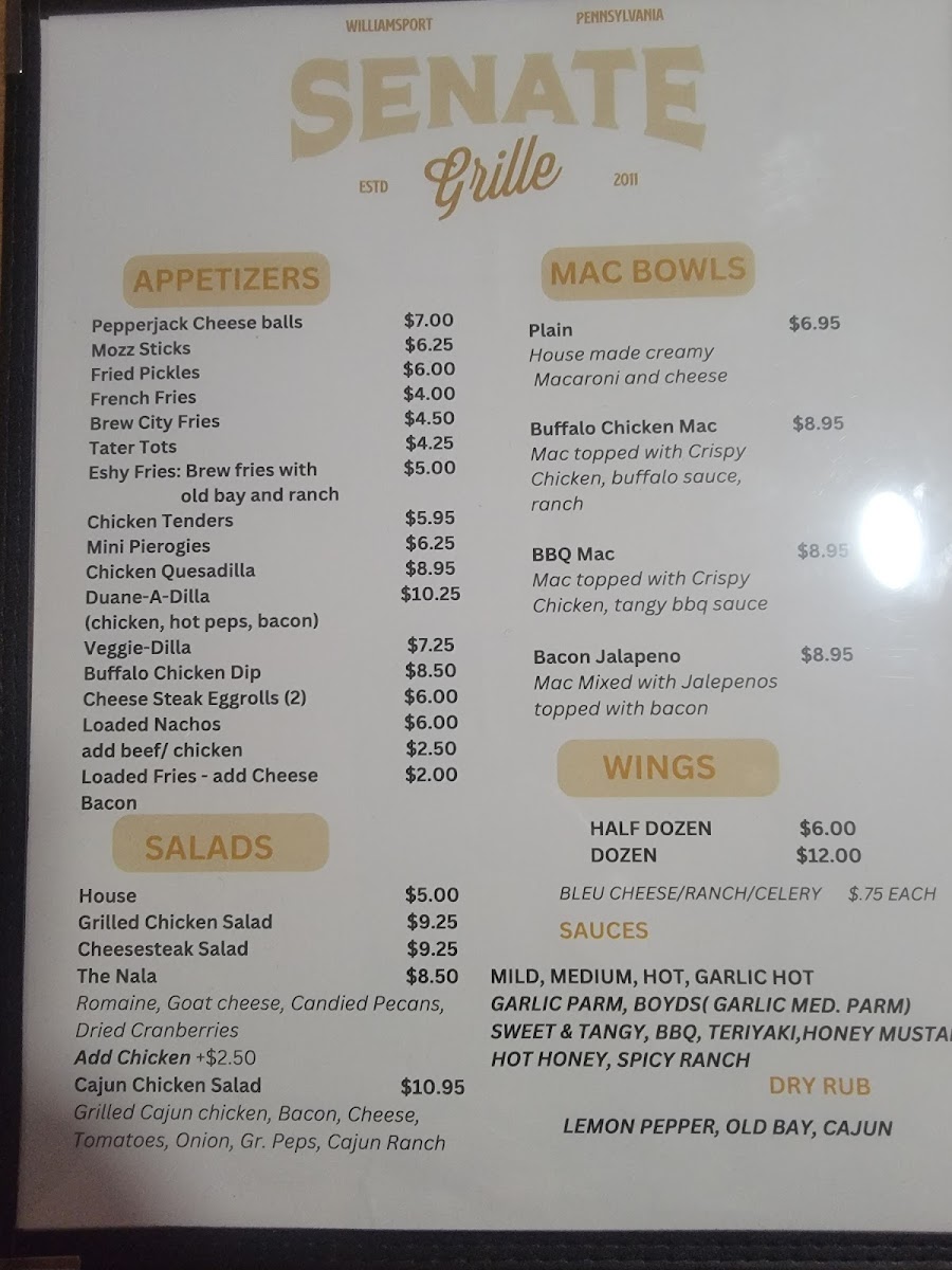 Welcome to The Senate Grille, a hidden gem located at 301 Grove St, Williamsport, PA. This charming bar offers a blend of welcoming service and delicious comfort food that keeps locals coming back for more.